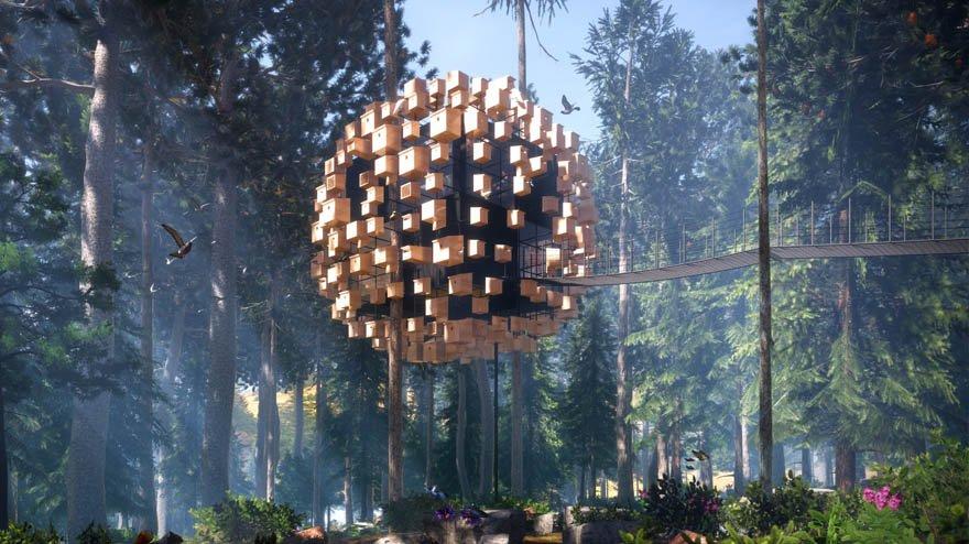 İsveçli kuşbilimci Ulf Ahman’ın fikriyle ortaya çıkan otel, Bjarke Ingels Group’tan (BIG) mimarlar tarafından tasarlanmış.